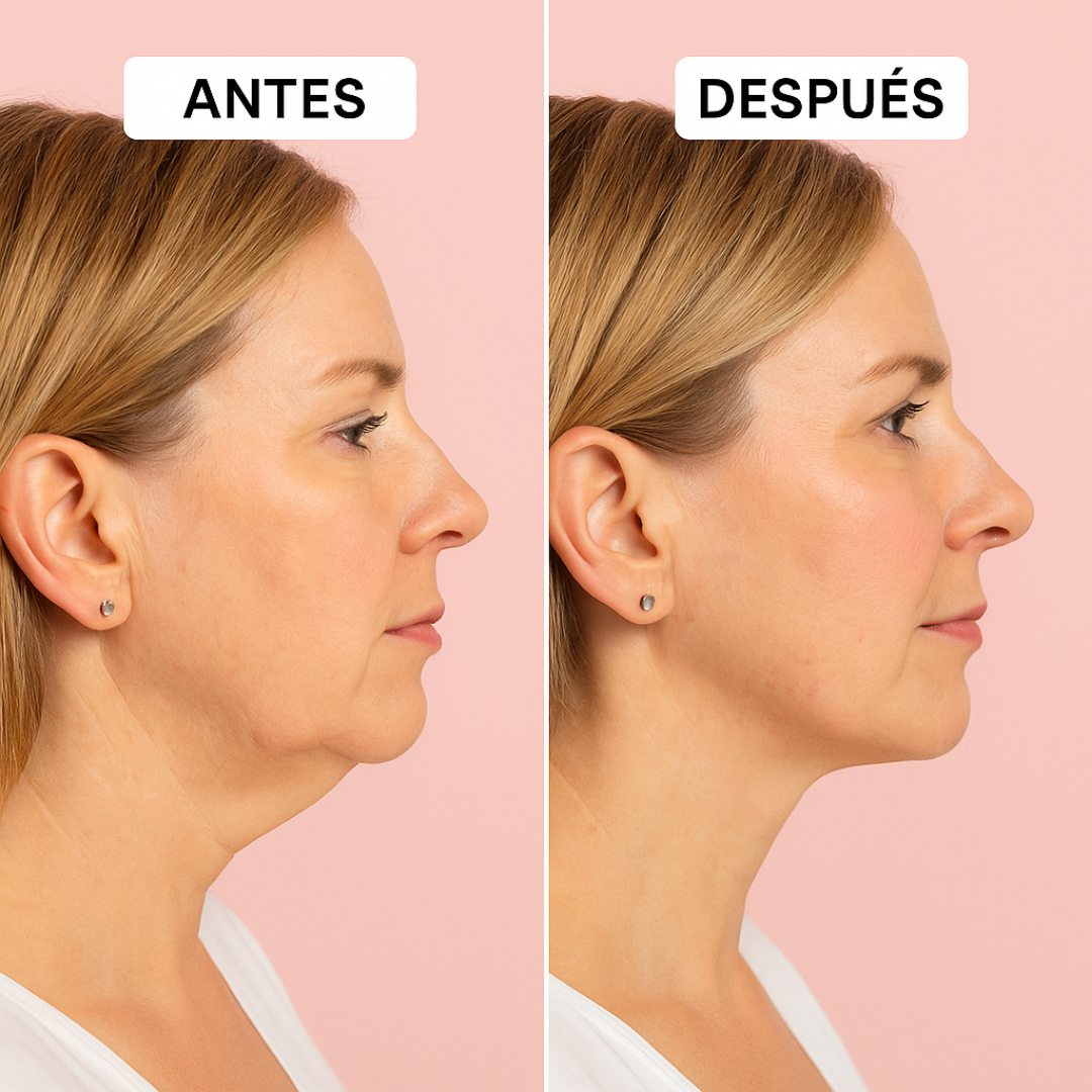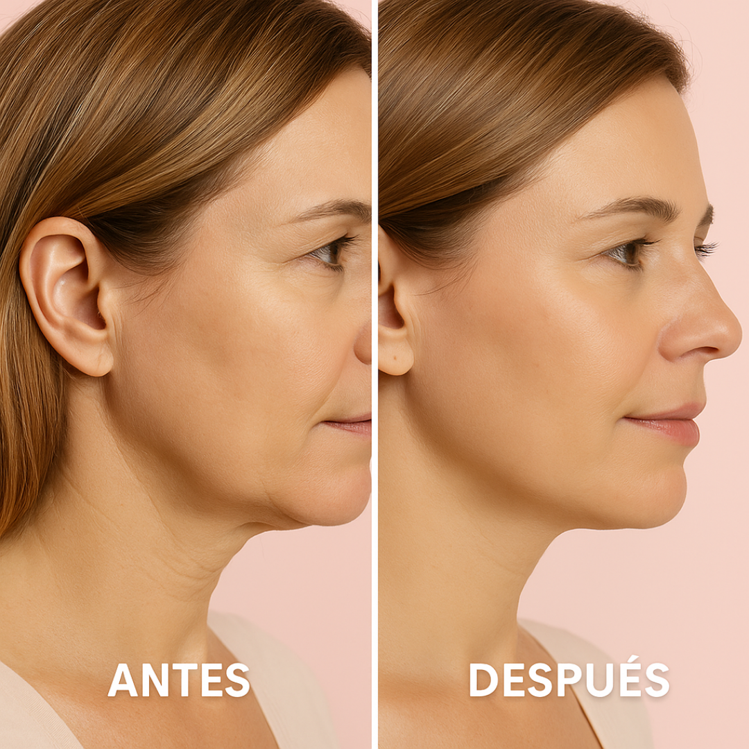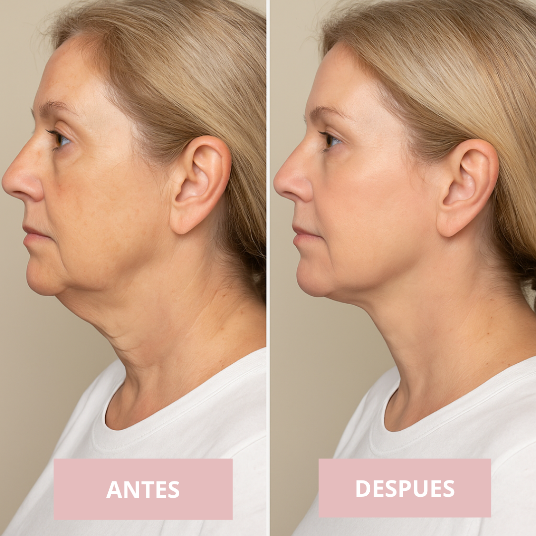 Actúa directamente sobre la flacidez que aparece con la edad, ayudando a tensar la piel, mejorar la elasticidad y redefinir el contorno facial sin necesidad de cirugías ni tratamientos invasivos.